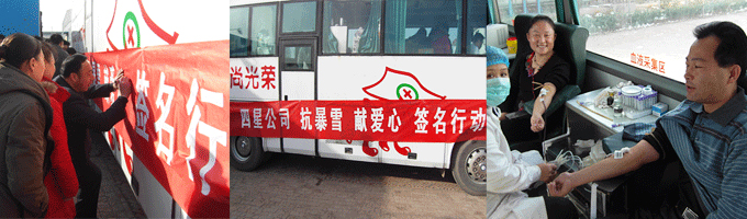 于2010年11月,河北省遭遇60年罕見的暴風雪,相關地區受災嚴重,一方群眾急需血液,但血庫供血告急,當公司接到上級政府救援通知后,及時動員全體職工無償獻血,奉獻愛心活動。