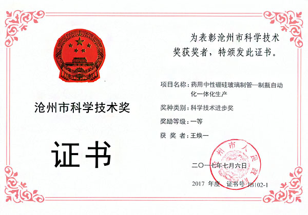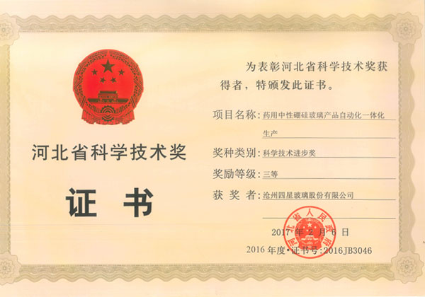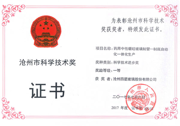 滄州四星玻璃股份有限公司榮獲河北省科學技術獎