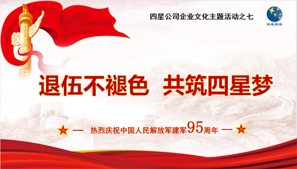 8月1日,在中國(guó)人民解放軍建軍95周年之際,為充分做好退役軍人慰問(wèn)和關(guān)懷工作,四星公司組織了關(guān)于“退伍不褪色,共筑四星夢(mèng)”為主題的座談會(huì)。