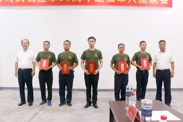 表彰四星公司先進(jìn)退役軍人(從左到右) 楊獻(xiàn)文、劉備、李建剛、畢榮軍、畢景濤